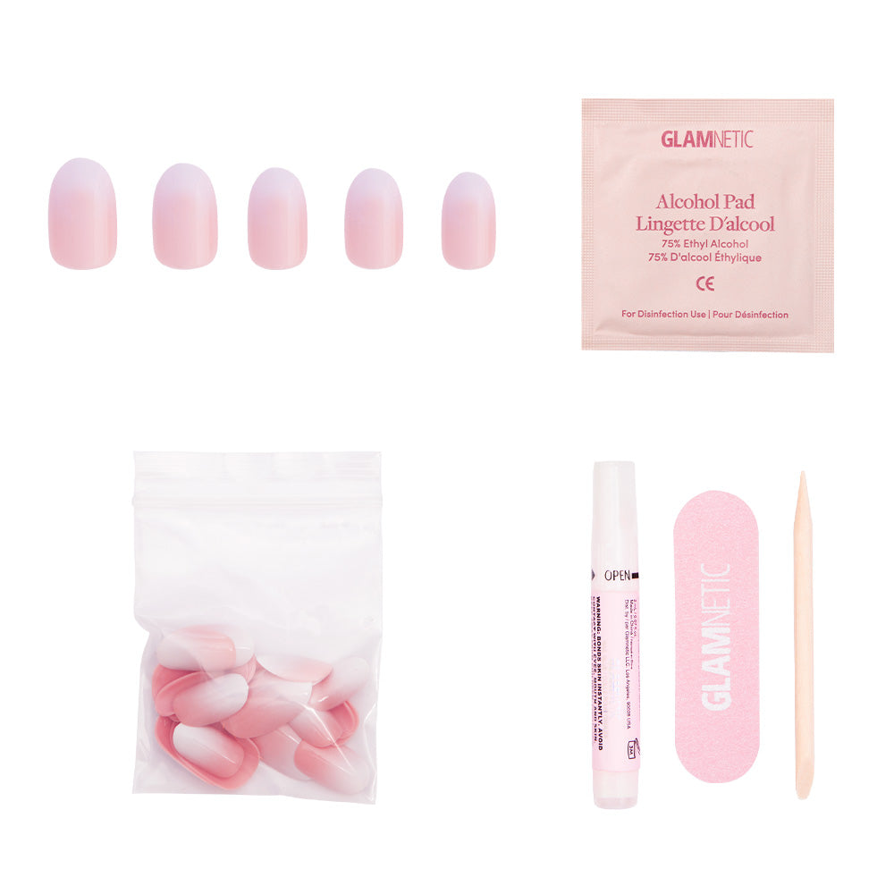 Depending on the style, the kits come with either 24 nails or 30 nails. All kits include an alcohol pad, a nail file, a cuticle stick, and glue..