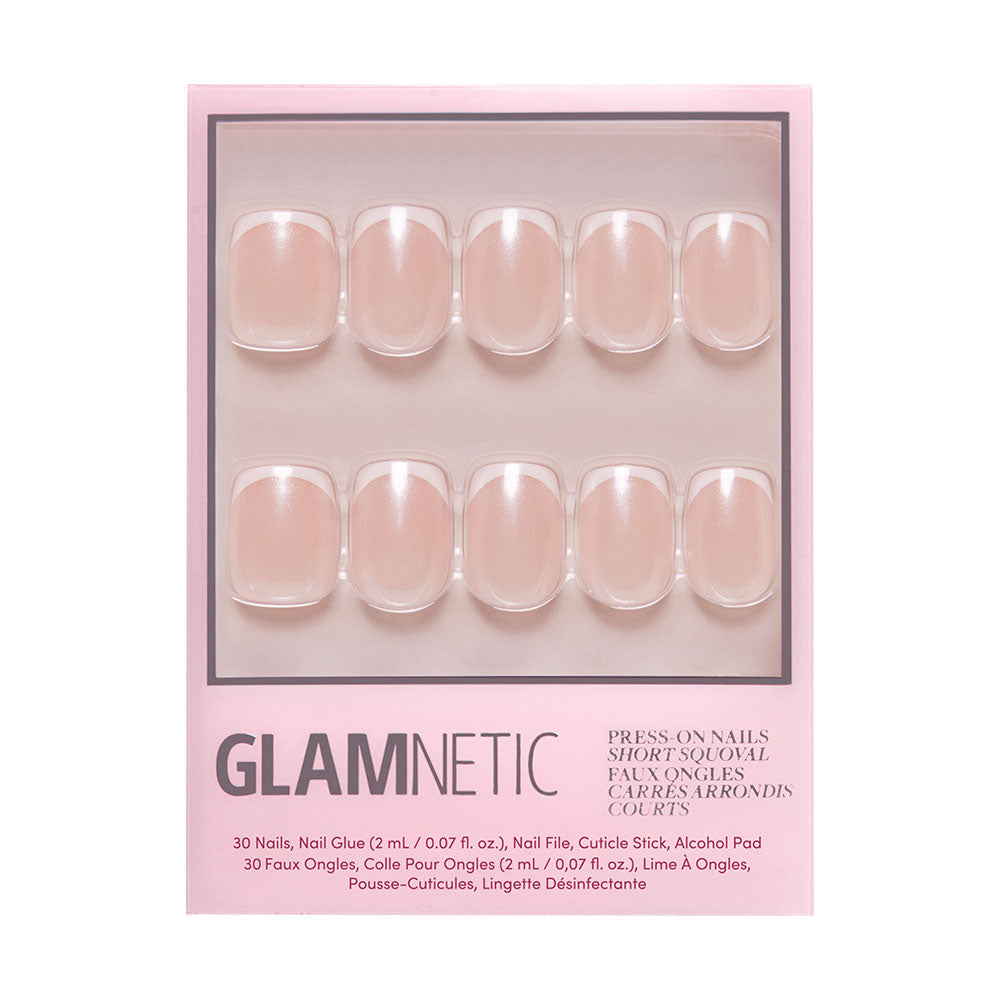 Ready to fall in love with the La Perle Nail Set? This trendy style features a twist on a classic French tip design and a glazed finish that sparkles like an ocean pearl. Plus, Glamnetic's short squoval shape instantly elevates your look, while still looking seamlessly like your own fingernails!