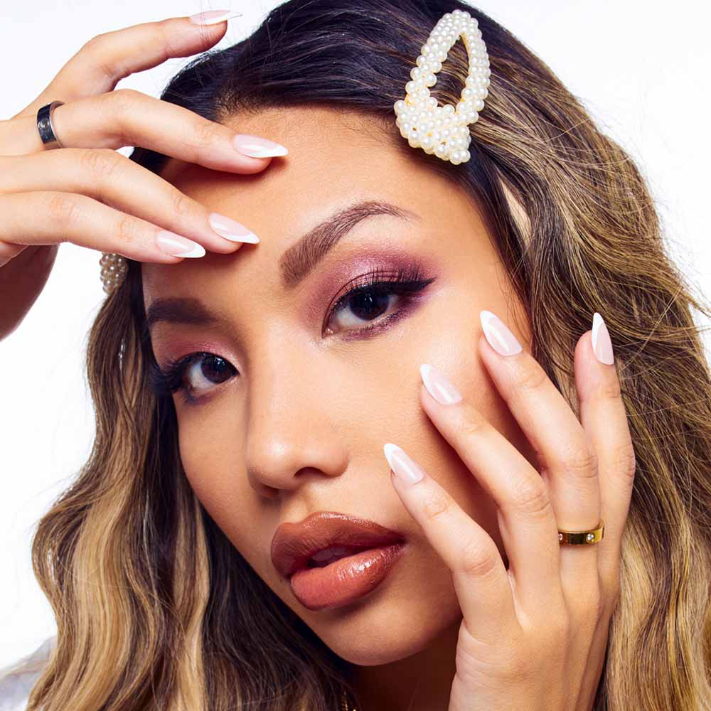 Apply an even layer of glue to natural nails and back of Glamnetic nails.